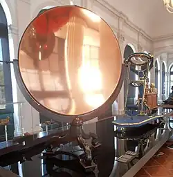 Ab 1679 arbeitete Tschirnhaus zusammen mit dem Mechaniker Johann Hoffmann am Bau von Brennspiegeln. Tschirnhaus vereinfachte die Herstellung der bislang aus Metalllegierungen gegossenen Spiegel. Durch das Treiben vorgefertigter Bleche aus erzgebirgischen Kupferhämmern gelang die preiswerte Fertigung von Spiegelapparaten. Die Kupferkalotten waren leicht und im Anschluss gut polierbar. Im Reflexionsvermögen optimiert wurden die konkaven Hohlspiegel in kreisrund umlaufende Holzzargen eingelegt. Über einen Dreifuß aufgestellt, waren sie gut justierbar.