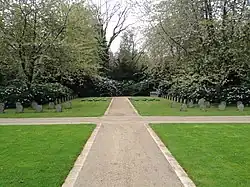Der ältere Teil des Friedhofes erhielt zusätzliche Gedenksteine aus Dolomit. Beide Teile des Friedhofes trennt ein breiter Mittelweg.