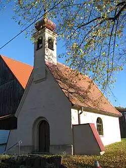 Für 1876 ist eine „Kirche“ in Eibach erwähnt.[25] Die heutige Ortskapelle, ein Sandsteinquaderbau mit Satteldach, Fassadenturmaufsatz mit Zwiebelhaube und mit eingezogener Chornische, wurde 1906 von der Gemeinde Patersholz im neobarocken Stil erbaut und 1907 ohne Zelebrationsrecht benediziert.[26] Die Ausstattung ist neugotisch; auf dem Altärchen steht eine Muttergottes mit Kind.[27]