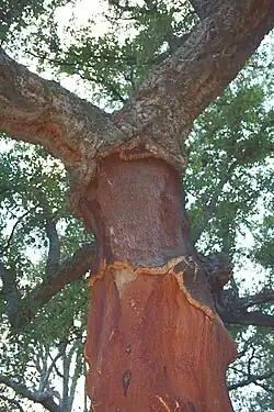 Viele Eichenarten (vor allem Korkeichen und mediterrane kalifornische Eichenarten) sind durch ihre dicke und gut regenerationsfähige Rinde gut an Brände angepasst. Zudem keimen ihre Eicheln gut und gern auf abgebranntem, konkurrenzfreiem Boden,[10] was sie zu typischen Arten von Feuerökosystemen der Subtropen macht.