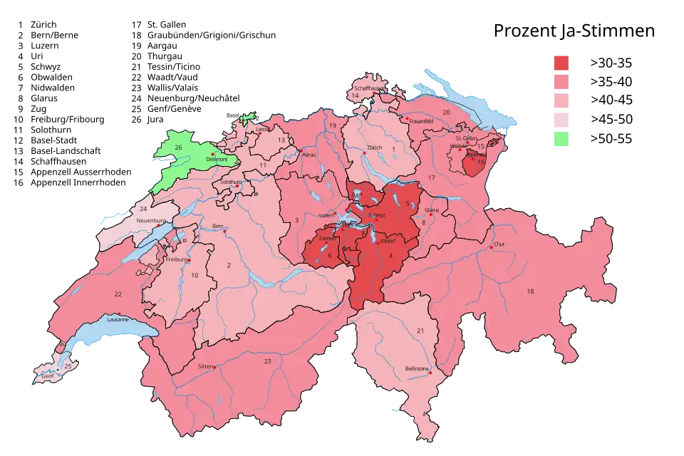 Die Schweizer Stimmberechtigten stimmten am 28. Februar 2016 über die Initiative ab.[7] Die Initiative wurde mit einer Mehrheit von 59,9 % der Abstimmenden abgelehnt. Ebenso stimmte die Mehrheit der Kantone dagegen. Lediglich in den Kantonen Basel-Stadt und Jura gab es eine knappe Mehrheit für die Initiative.[8]