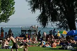 - ↑ Bester Blick auf Dreharbeiten. In: Südkurier. Abgerufen am 1. September 2012: „Wer einmal hautnah Dreharbeiten erleben und vielleicht einen Blick auf Katja Riemann erhaschen will, ist am Freitag, 18. August, im Café Strandbad in Nußdorf gut aufgehoben […] während an diesem Tag das Strandbad wegen den Aufnahmen für ‚Ein fliehendes Pferd‘ geschlossen bleibt“