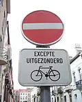 Ist die Nutzung entgegen der Einbahnstraße, beispielsweise für Radfahrer oder Linienbusse, zugelassen, so wird dies mit Hilfe eines Zusatzzeichens angezeigt. In Deutschland soll eine Freigabe für den Radverkehr auf der Fahrbahn einer Einbahnstraße erfolgen, wenn die Einbahnstraße ausreichend breit ist, die zulässige Höchstgeschwindigkeit maximal 30 km/h beträgt und die Verkehrsführung im Streckenverlauf sowie an Kreuzungen und Einmündungen übersichtlich ist. Diese Voraussetzungen greifen jedoch nur bei der Freigabe echter Einbahnstraßen. Unechte Einbahnstraßen dürfen ohnehin in beide Richtungen befahren werden, hier bezieht sich die Radfahrer-Freigabe nur auf das Verbot der Einfahrt (Zeichen 267), das an einem Ende der Straße bzw. des Abschnitts steht.
