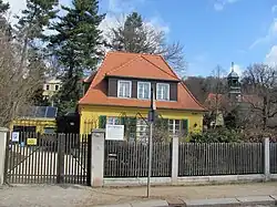- ↑ Volker Helas (Bearb.): Stadt Radebeul. Hrsg.: Landesamt für Denkmalpflege Sachsen, Große Kreisstadt Radebeul (= Denkmaltopographie Bundesrepublik Deutschland. Denkmale in Sachsen). Sax-Verlag, Beucha 2007, ISBN 978-3-86729-004-3, S. 64 (Auszug aus der Bauakte).