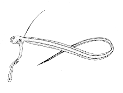 - ↑ S. Ohashi (2018). Morphology of a unique ophidiid, Hypopleuron caninum Radcliffe 1913 (Ophidiiformes, Ophidiidae, Neobythitinae), suggesting a close relationship with the family Carapidae. Zootaxa, 4521(4), 499–538, doi: 10.11646/zootaxa.4521.4.2