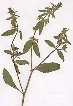Die einjährige, krautige Pflanze erreicht eine Wuchshöhe von 10 bis 30 cm. Der Stängel wächst aufrecht und ist meist stark ästig. Er ist wie die Blätter fast kahl oder nur kurz und weich behaart. Die Laubblätter sind länglich-elliptisch, fein gekerbt bis mehr oder weniger ganzrandig, 2 bis 5 cm lang und 0,5 bis 1,5 cm breit. Die unteren sind gestielt, die oberen sitzend und nahezu lanzettlich geformt.