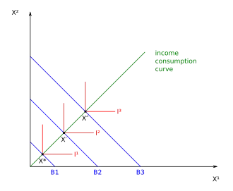 Man bezeichnet mit die Marshallsche Nachfrage nach den Gütern zu Preisen bei einem Haushaltseinkommen von y. Betrachte nun spezielle Marshallsche Nachfragen, die der Zusatzbedingung genügen, dass die Preise jeweils konstant gelassen werden, das heißt . Berücksichtigt man die Definition der Marshallschen Nachfrage, so bedeutet dies, dass also ein Güterbündel genau dann (und nur dann) auf der Einkommens-Konsum-Kurve liegt, wenn es ein positives Einkommen y gibt, mit dem gilt: