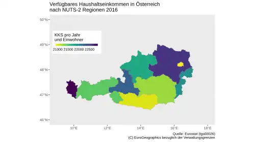 - ↑ a b Verfügbares Einkommen der privaten Haushalte, nach NUTS-2-Regionen. EUROSTAT, abgerufen am 7. Mai 2019.