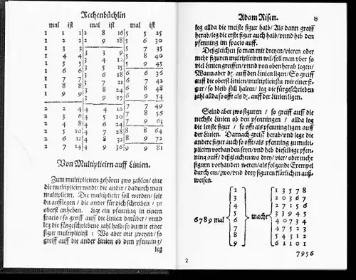 - ↑ Stephan Weiss: The Small Multiplication Table through the Centuries in Europe. (PDF; 2,0 MB) In: Journal of the Oughtred Society, 22, Fall 2013, S. 2.