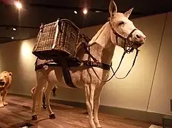 Ausgestopftes Maultier mit Bundeswehr-Tragegeschirr im Militärhistorischen Museum der Bundeswehr