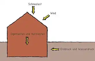 Bauwerke müssen vielerlei Lasten und Einwirkungen widerstehen können. Primär tragen sie ihr Eigengewicht. Auf Bauteile und Bauwerke unter der Erdoberfläche wirken Erddruck und Wasserdruck. Diese Einwirkungen nennt man auch ständige Einwirkungen.