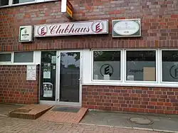 Clubhaus und Geschäftsstelle des SV Eintracht am Eingang zum Stadion am Heideweg