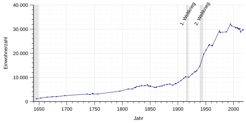 Einwohnerentwicklung von Bad Hersfeld nach nebenstehender Tabelle. Oben von 1645 bis 2017. Unten ein Ausschnitt ab 1871