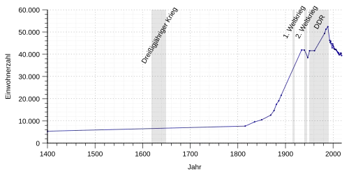 Zum 31. Dezember 2016 lebten 40.450 Menschen in der Stadt. Der Anteil an älterer Bevölkerung ist in den letzten Jahren typisch für ostdeutsche Städte deutlich angestiegen.