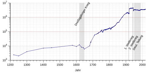 Die Einwohnerzahlen von 1220 bis 1688 sind Schätzungen. Vor der Vereinigung 1710 wurden Berlin und Kölln immer zusammen gerechnet.