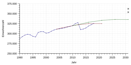 Im Jahr 2011 wurde eine Nachfolgeprognose veröffentlicht. Diese sieht wie bei allen deutschen Großstädten einen höheren Bevölkerungspfad vor.
