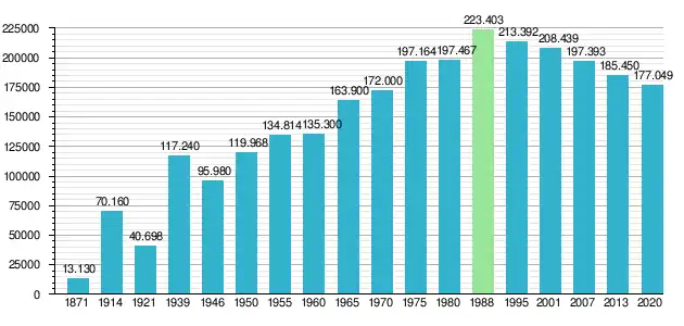 - 1964 – 163 500 – Eingemeindung von Łabędy (Laband)