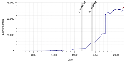 - ↑ a b Einwohnerzahlen nach Angaben der Stadt ( vom 25. März 2017 im Internet Archive)