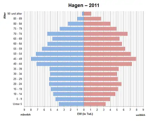 - ↑ Datenbank Zensus 2011, Hagen, Alter + Geschlecht