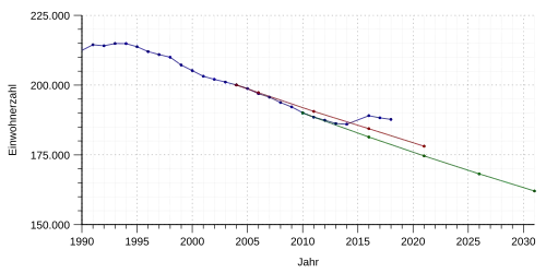 Absolute Bevölkerungsentwicklung - Prognose für Hagen (Hauptwohnsitze):[2]