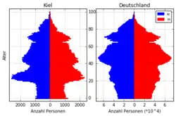 - ↑ Bertelsmann-Stiftung: Prognose der absoluten Bevölkerungsentwicklung für Kiel. In: wegweiser-kommune.de. Ehemals im (nicht mehr online verfügbar); abgerufen am 7. April 2018. (Seite nicht mehr abrufbar. Suche in Webarchiven)