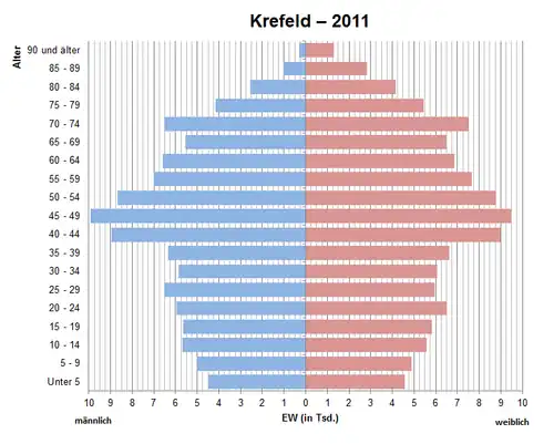 - ↑ Datenbank Zensus 2011, Krefeld, Alter + Geschlecht