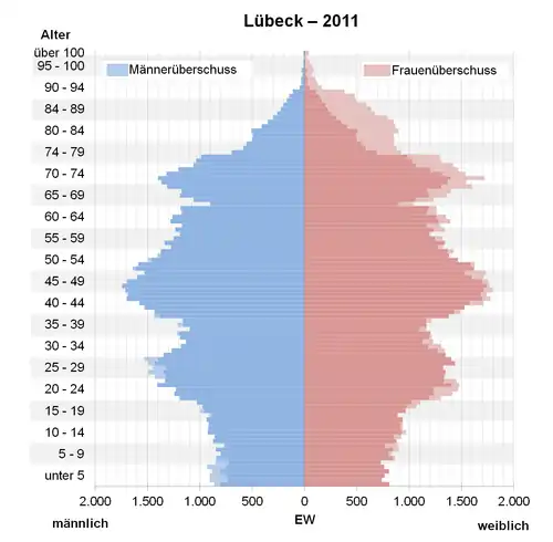 - ↑ Datenbank Zensus 2011, Lübeck, Alter + Geschlecht