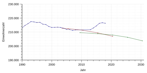 Quelle: Statistisches Amt für Hamburg und Schleswig-Holstein[2] Grundlage: Amtliche Bevölkerungsfortschreibung; diese Zahlen weichen von denen der Hansestadt Lübeck ab, die auf der Grundlage des Einwohnermelderegisters erstellt werden; die dortigen Zahlen lauten zum 31. Dezember 2017 219.255 und zum 31. Dezember 2018 220.629.[3]