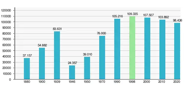 | 1998 | 109 335 | Höchste Einwohnerzahl |