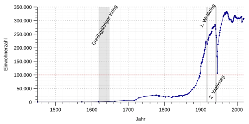 Erst mit dem Beginn der Industrialisierung im 19. Jahrhundert beschleunigte sich das Bevölkerungswachstum. 1897 überschritt die Einwohnerzahl der Stadt die Grenze von 100.000 und machte sie damit zur Großstadt.