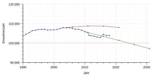 In einer aktualisierten Bevölkerungsprognose der Bertelsmann Stiftung wird für den Zeitraum 2009–2030 ein Rückgang der Bevölkerung um 8,3 Prozent bzw. 8.760 Personen vorausgesagt.