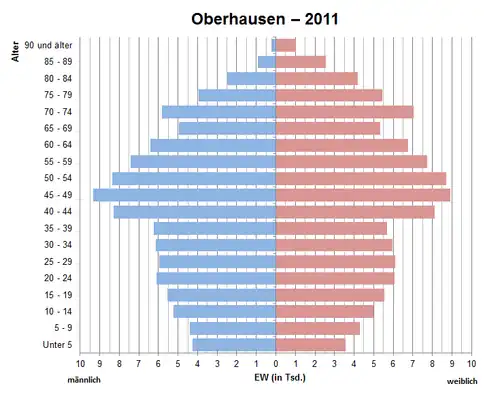 - ↑ Datenbank Zensus 2011, Oberhausen, Alter + Geschlecht