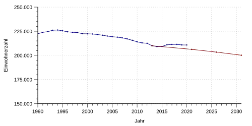 Absolute Bevölkerungsentwicklung 2012–2030 – Prognose für Oberhausen (Hauptwohnsitze):[2]