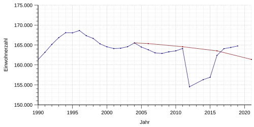 Die Einwohnerzahl beträgt ermittelt durch den Zensus 2011 154.513 (31. Dez. 2011).