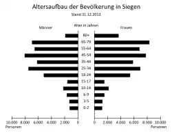 Die folgende Tabelle zeigt die Altersstruktur der Stadt Siegen (Stand 31. Dezember 2013).