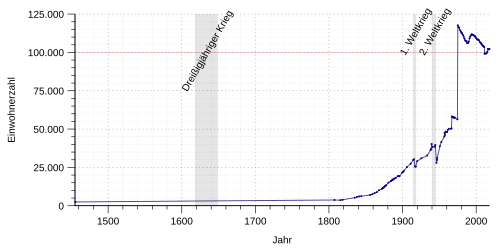 Die folgenden Abschnitte zeigen die Einwohnerzahlen nach dem jeweiligen Gebietsstand. Bis 1833 handelt es sich meist um Schätzungen, danach um Volkszählungsergebnisse (*) oder amtliche Fortschreibungen der jeweiligen Statistischen Ämter beziehungsweise der Stadtverwaltung. Die Angaben beziehen sich ab 1843 auf die Ortsanwesende Bevölkerung, ab 1925 auf die Wohnbevölkerung und seit 1987 auf die Bevölkerung am Ort der Hauptwohnung. Vor 1843 wurde die Einwohnerzahl nach uneinheitlichen Erhebungsverfahren ermittelt. Die jüngsten Zahlen wurden auf Grundlage der Volkszählung 2022 fortgeschrieben.