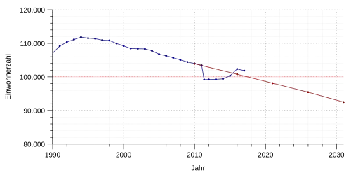 | Einwohner mit Hauptwohnsitz | 102.234 | 105.349 |