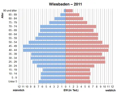 - ↑ Datenbank Zensus 2011, Wiesbaden, Alter + Geschlecht
