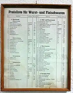 - 2,40 M 250 g Tafelbutter (Fettgehalt geringer als in der Bundesrepublik, bei noch geringerem Gehalt als „Landbutter“ bezeichnet)[4]