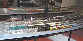 Ein Modell in H0 zeigt den Bahnhof Vallorbe aus dem Jahr 1908. Eine Tonbildschau erzählt die Geschichte der Bahn in Vallorbe, bzw. der Strecke Mailand – Paris. Auf einer 0-Anlage kann der Besucher verschiedene Zugsformationen, welche seit 1870 in Vallorbe verkehren – vom Dampfzug bis zum TGV – auswählen. Diese fahren dann auf einem Rundkurs durch den Ausstellungsraum. In der weiteren Ausstellung werden typische Gegenstände der Eisenbahn, wie eine Zugskupplung, Kartonbillette, Stationsglocken, Zugschilder «Mailand – Paris» bis hin zu einem lauffähigen Musikautomaten gezeigt. Ein weiteres Bahnmodell in H0 kann gegen eine Gebühr in Betrieb gesetzt werden.