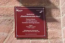 - ↑ Kulturdenkmal Nieder Eisenbahnbrücke. In: Frankfurter Rundschau. Frankfurt 63.2007, H. 67 (20. März), S. 32 (S-Ausgabe).