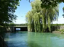 Einige hundert Meter östlich existiert schon seit dem 13. Jahrhundert die Landtorbrücke für den Straßenverkehr. Beide Übergänge zusammen trennen den so genannten Kleinen See vom übrigen Bodensee ab. Zwei Durchlässe (Brücken) ermöglichen es kleineren Booten, den Damm auf dem Weg von und zum Yachthafen zu passieren; sie verhindern zudem die Verlandung des Kleinen Sees.[1]