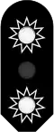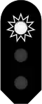 | Erlaubnissignal | Ein lotrechter weiß leuchtender Balken auf schwarzem Grund der gegebenenfalls durch einen oder zwei weiß leuchtende Punkte ergänzt wird. |
