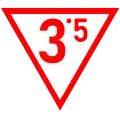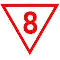 | Ankündigungstafel | Eine rote Kennziffer in einer auf der Spitze stehenden dreieckigen rückstrahlenden weißen Tafel mit rotem Rand. |