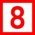 | Geschwindigkeitstafel | Eine rote Kennziffer auf einer quadratischen rückstrahlenden weißen Tafel mit rotem Rand. |