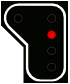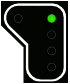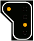 • Schwarzer dreieckiger Signalschirm mit zwei horizontal nebeneinander angeordneten weißen Lichtern: Halt für kleine Bewegungen.