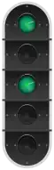 Zwei grüne Lichter | Achtung! Fahrt mit 40 km/h. Annäherung an das nachfolgende Signal mit Vorsicht, dieses kann „Halt!“ zeigen. | Achtung! Fahrt mit 40 km/h oder nach Führerstandsignalisierung auch höhere. Annäherung an das nachfolgende Signal mit Vorsicht, dieses kann „Halt!“ zeigen. |