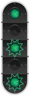 Zwei blinkende grüne Lichter | Fahrt mit 40 km/h erwarten! |