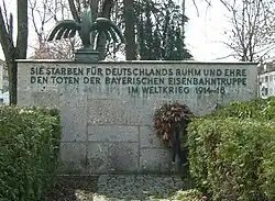 - ↑ a b c d Gerhard Willhalm: Denkmal für die Gefallenen der Bayerischen Eisenbahntruppe, CC BY-NC 4.0.