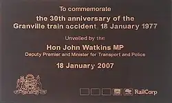 - ↑ Australian Broadcasting Corporation: Granville victims remembered v. 18. Januar 2007.